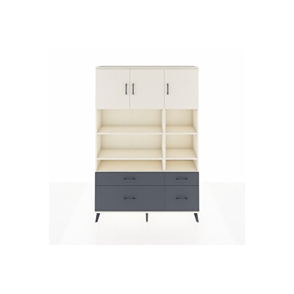 Arges Dolap 10 Raflı 4 Çekmeceli 3 Kapaklı 132x30x195 Aytaşı-Aytaşı/Antrasit