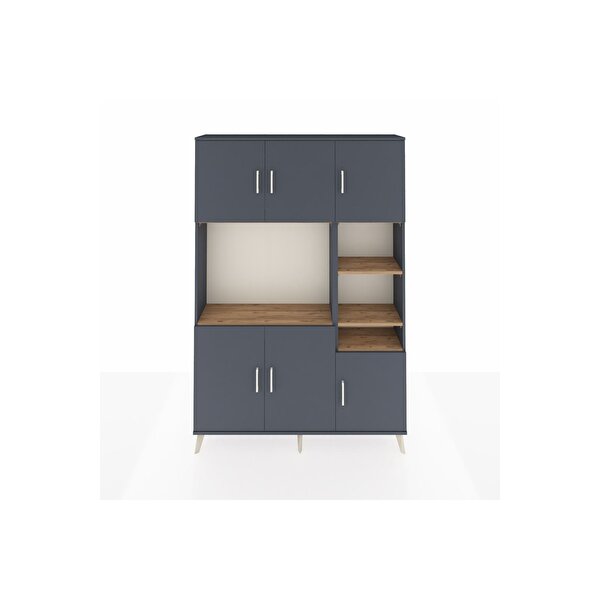 Dienni Mobilya Arges Dolap 10 Raflı 6 Kapaklı 132x30x195 Antrasit-antrasit/çam