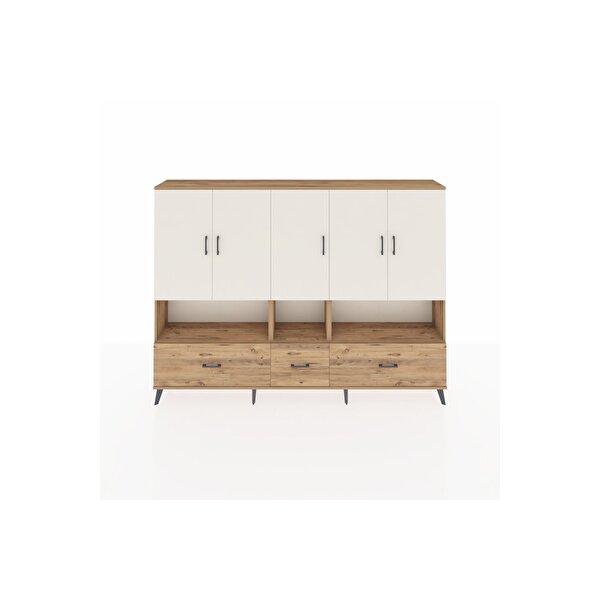 Arges Dolap 12 Raflı 3 Çekmeceli 5 Kapaklı 220x30x163 Çam-aytaşı/çam
