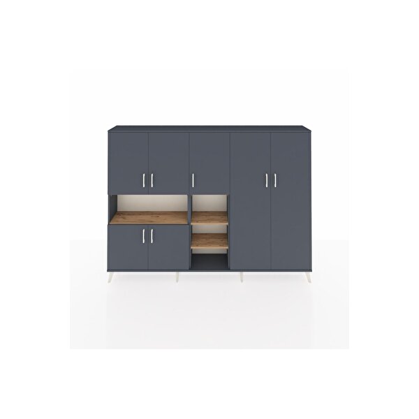 Arges Dolap 13 Raflı 7 Kapaklı 220x30x163 Antrasit-Antrasit/Çam