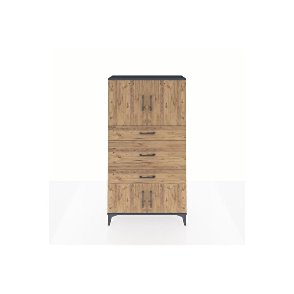 Arges Dolap 2 Raflı 3 Çekmeceli 4 Kapaklı 88x30x163 Antrasit-Çam