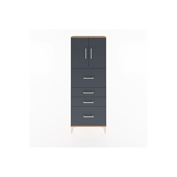 Dienni Mobilya Arges Dolap 2 Raflı 4 Çekmeceli 2 Kapaklı 60x30x163 Çam-antrasit