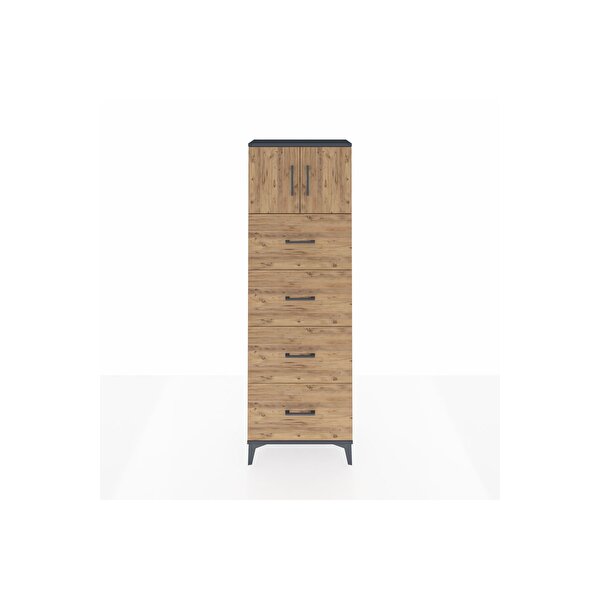 Arges Dolap 2 Raflı 4 Çekmeceli 2 Kapaklı 60x30x182 Antrasit-Çam