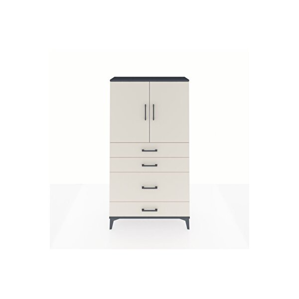 Arges Dolap 2 Raflı 4 Çekmeceli 2 Kapaklı 88x30x163 Antrasit-Aytaşı