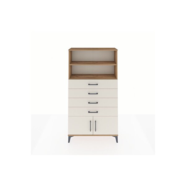 Dienni Mobilya Arges Dolap 2 Raflı 4 Çekmeceli 2 Kapaklı 88x30x163 Çam-aytaşı