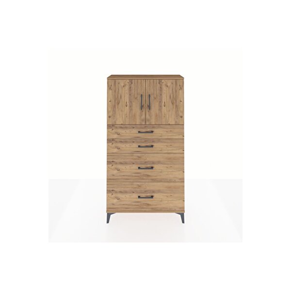 Dienni Mobilya Arges Dolap 2 Raflı 4 Çekmeceli 2 Kapaklı 88x30x163 Çam-çam