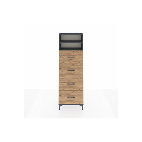 Arges Dolap 2 Raflı 4 Çekmeceli 60x30x182 Antrasit-Çam