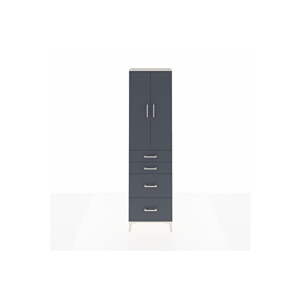 Dienni Mobilya Arges Dolap 2 Raflı 4 Çekmeceli Tek Askılı 60x30x221 Aytaşı-antrasit
