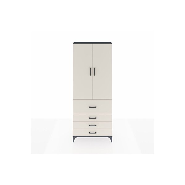 Arges Dolap 2 Raflı 4 Çekmeceli Tek Askılı 88x30x221 Antrasit-Aytaşı