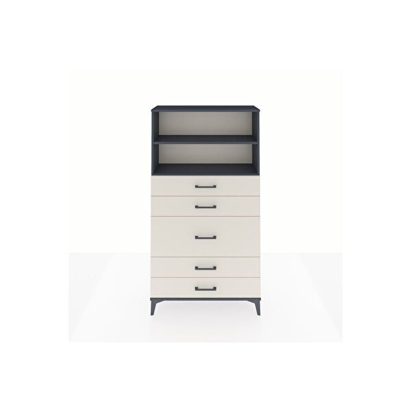 Arges Dolap 2 Raflı 5 Çekmeceli 88x30x163 Antrasit-Aytaşı