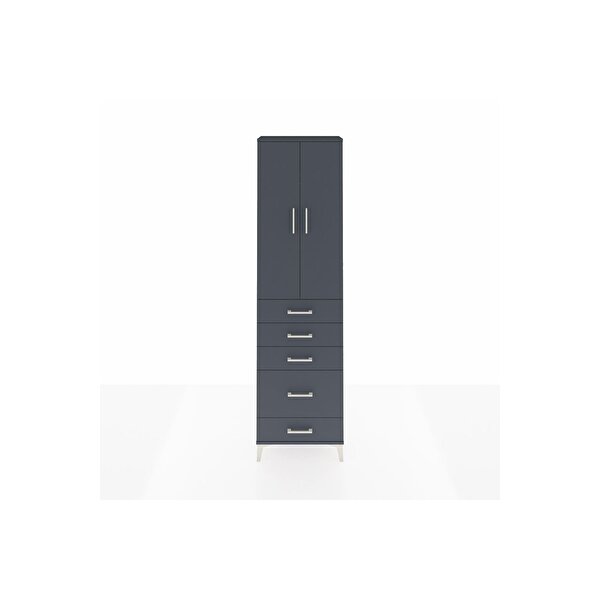 Dienni Mobilya Arges Dolap 2 Raflı 5 Çekmeceli Tek Askılı 60x30x221 Antrasit-antrasit