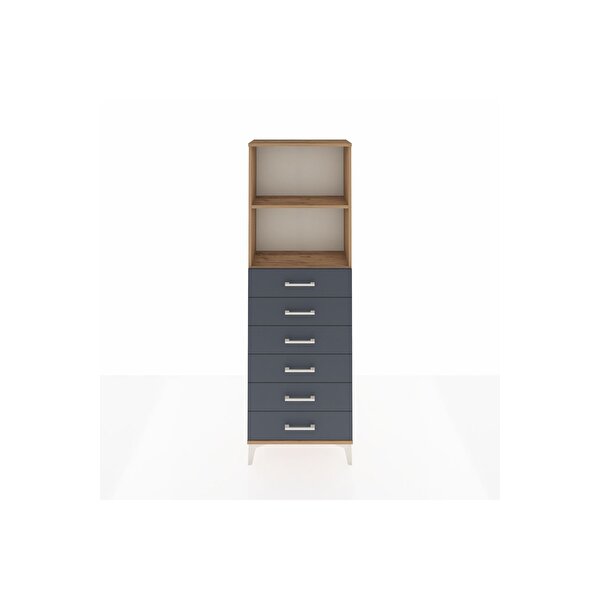 Arges Dolap 2 Raflı 6 Çekmeceli 60x30x182 Çam-Antrasit