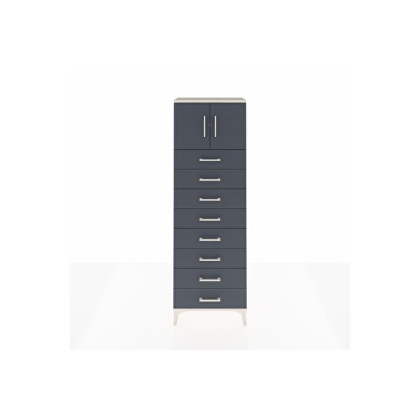 Arges Dolap 2 Raflı 8 Çekmeceli 2 Kapaklı 60x30x182 Aytaşı-Antrasit