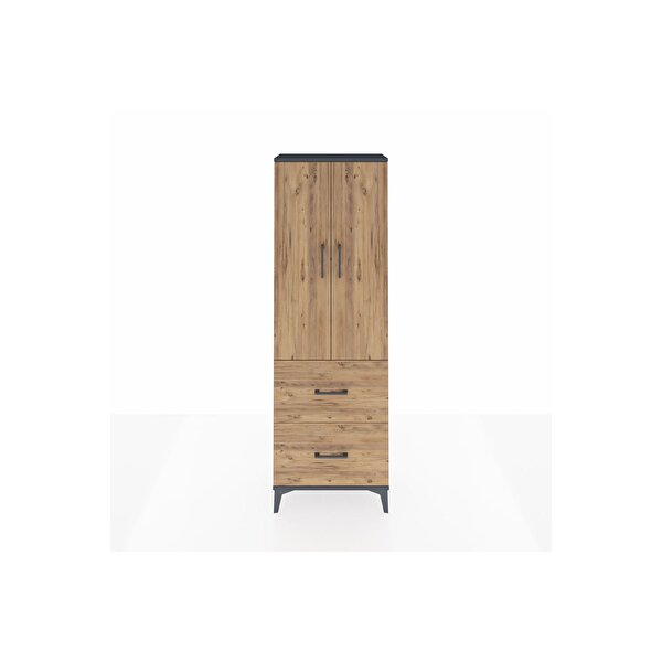 Arges Dolap 3 Raflı 2 Çekmeceli 2 Kapaklı 60x30x182 Antrasit-Çam