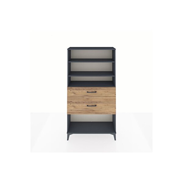 Arges Dolap 3 Raflı 2 Çekmeceli 88x30x163 Antrasit-Çam