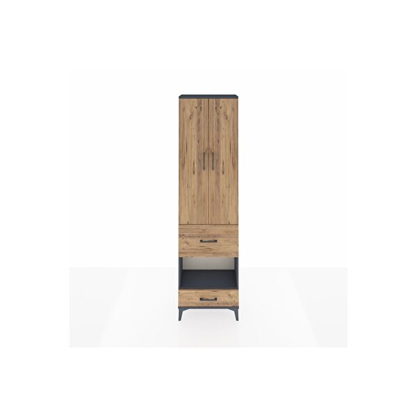 Arges Dolap 3 Raflı 2 Çekmeceli Tek Askılı 60x30x221 Antrasit-Çam