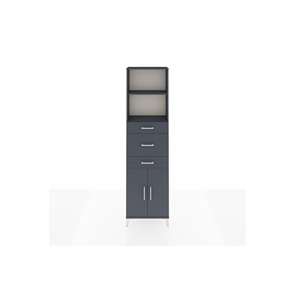 Arges Dolap 3 Raflı 3 Çekmeceli 2 Kapaklı 60x30x221 Antrasit-Antrasit