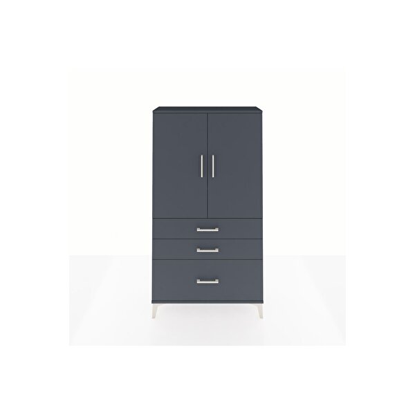 Arges Dolap 3 Raflı 3 Çekmeceli 2 Kapaklı 88x30x163 Antrasit-Antrasit