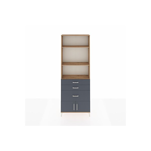 Arges Dolap 3 Raflı 3 Çekmeceli 2 Kapaklı 88x30x243 Çam-Antrasit