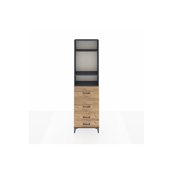 Dienni Mobilya Arges Dolap 3 Raflı 4 Çekmeceli 60x30x221 Antrasit-çam