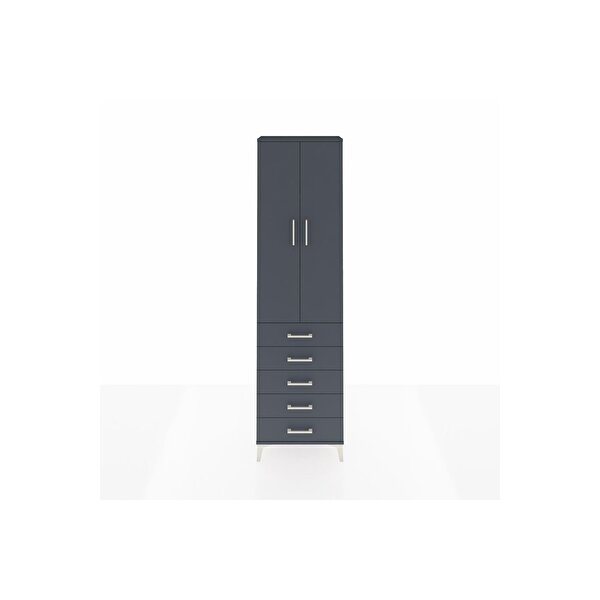 Dienni Mobilya Arges Dolap 3 Raflı 5 Çekmeceli 2 Kapaklı 60x30x221 Antrasit-antrasit