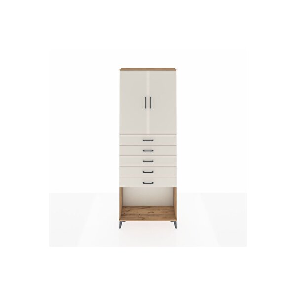 Dienni Mobilya Arges Dolap 3 Raflı 5 Çekmeceli 2 Kapaklı 88x30x243 Çam-aytaşı
