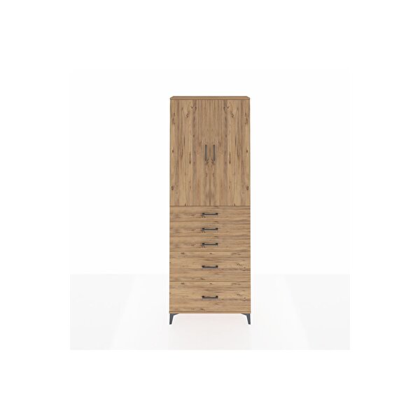 Dienni Mobilya Arges Dolap 3 Raflı 5 Çekmeceli 2 Kapaklı 88x30x243 Çam-çam
