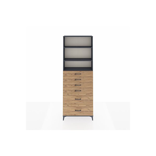 Arges Dolap 3 Raflı 6 Çekmeceli 88x30x243 Antrasit-Çam