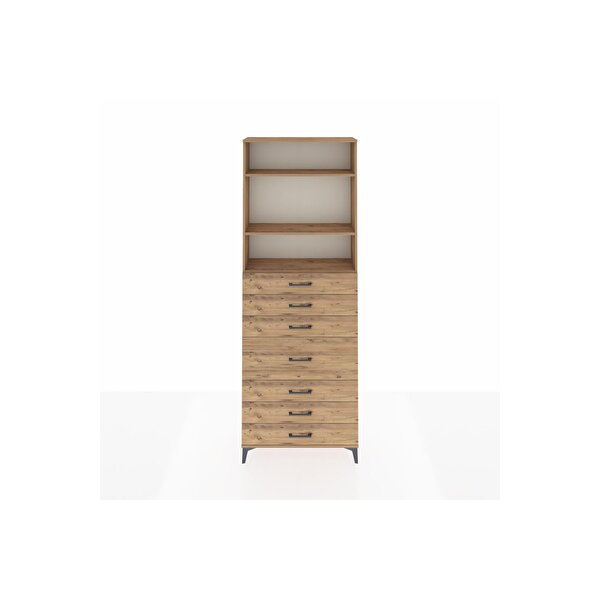Arges Dolap 3 Raflı 7 Çekmeceli 88x30x243 Çam-çam