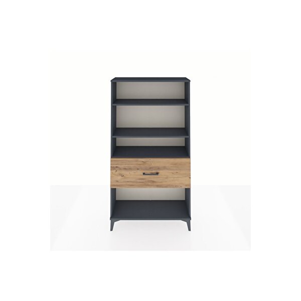 Arges Dolap 3 Raflı Tek Çekmeceli 88x30x163 Antrasit-Çam