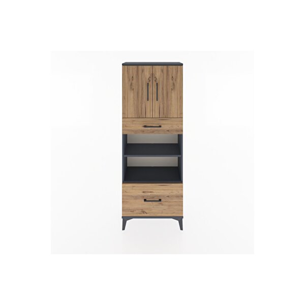 Arges Dolap 4 Raflı 2 Çekmeceli 2 Kapaklı 60x30x163 Antrasit-Çam