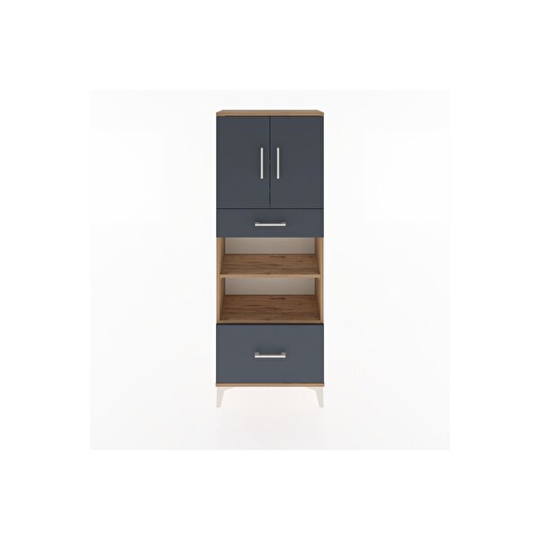 Dienni Mobilya Arges Dolap 4 Raflı 2 Çekmeceli 2 Kapaklı 60x30x163 Çam-antrasit