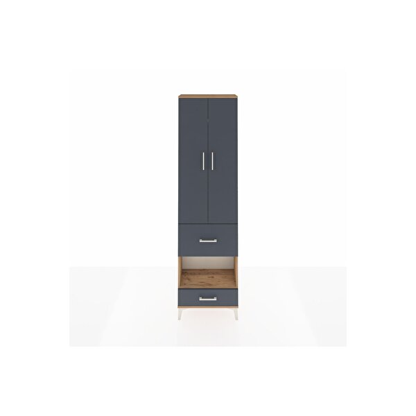 Dienni Mobilya Arges Dolap 4 Raflı 2 Çekmeceli 2 Kapaklı 60x30x221 Çam-antrasit