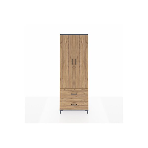 Arges Dolap 4 Raflı 2 Çekmeceli 2 Kapaklı 88x30x243 Antrasit-Çam
