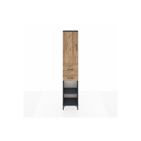 Dienni Mobilya Arges Dolap 4 Raflı 2 Çekmeceli Tek Kapaklı 44x30x221 Antrasit-çam