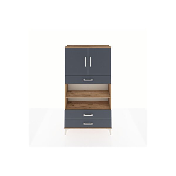 Arges Dolap 4 Raflı 3 Çekmeceli 2 Kapaklı 88x30x163 Çam-Antrasit