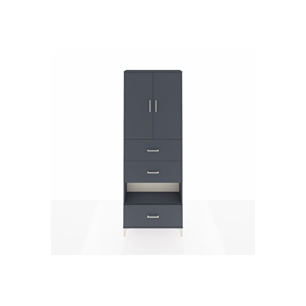 Dienni Mobilya Arges Dolap 4 Raflı 3 Çekmeceli 2 Kapaklı 88x30x243 Antrasit-antrasit