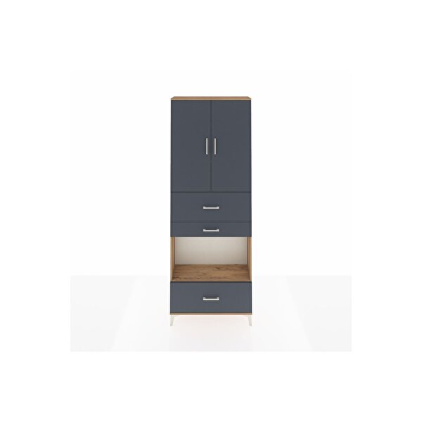 Dienni Mobilya Arges Dolap 4 Raflı 3 Çekmeceli 2 Kapaklı 88x30x243 Çam-antrasit