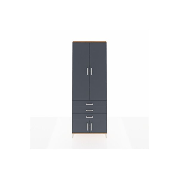Dienni Mobilya Arges Dolap 4 Raflı 3 Çekmeceli 4 Kapaklı 88x30x243 Çam-antrasit