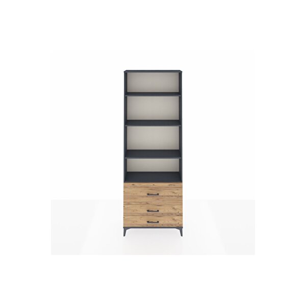 Arges Dolap 4 Raflı 3 Çekmeceli 88x30x243 Antrasit-Çam