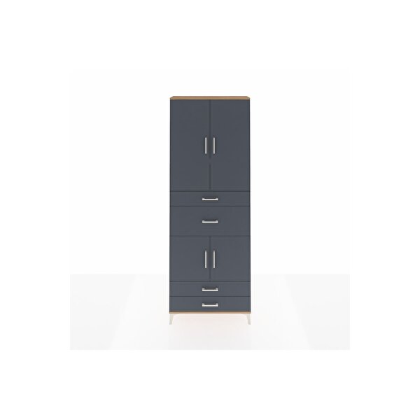 Dienni Mobilya Arges Dolap 4 Raflı 4 Çekmeceli 4 Kapaklı 88x30x243 Çam-antrasit