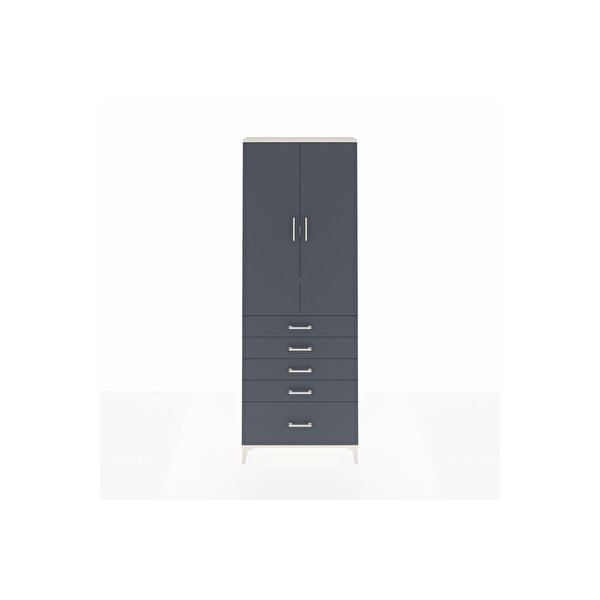 Arges Dolap 4 Raflı 5 Çekmeceli 2 Kapaklı 88x30x243 Aytaşı-Antrasit
