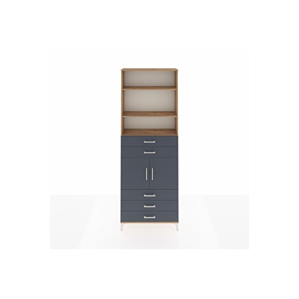 Dienni Mobilya Arges Dolap 4 Raflı 5 Çekmeceli 2 Kapaklı 88x30x243 Çam-antrasit