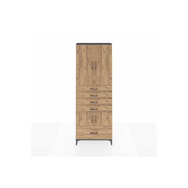 Arges Dolap 4 Raflı 5 Çekmeceli 4 Kapaklı 88x30x243 Antrasit-Çam