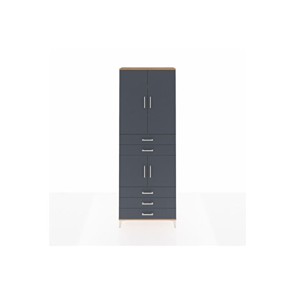Dienni Mobilya Arges Dolap 4 Raflı 5 Çekmeceli 4 Kapaklı 88x30x243 Çam-antrasit