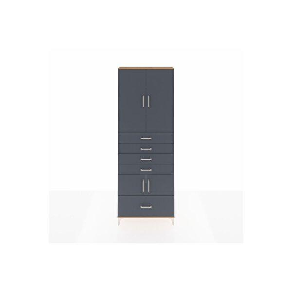 Dienni Mobilya Arges Dolap 4 Raflı 5 Çekmeceli 4 Kapaklı 88x30x243 Çam-antrasit
