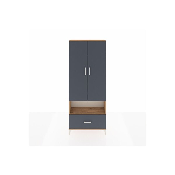 Dienni Mobilya Arges Dolap 4 Raflı Tek Çekmeceli 2 Kapaklı 88x30x221 Çam-antrasit