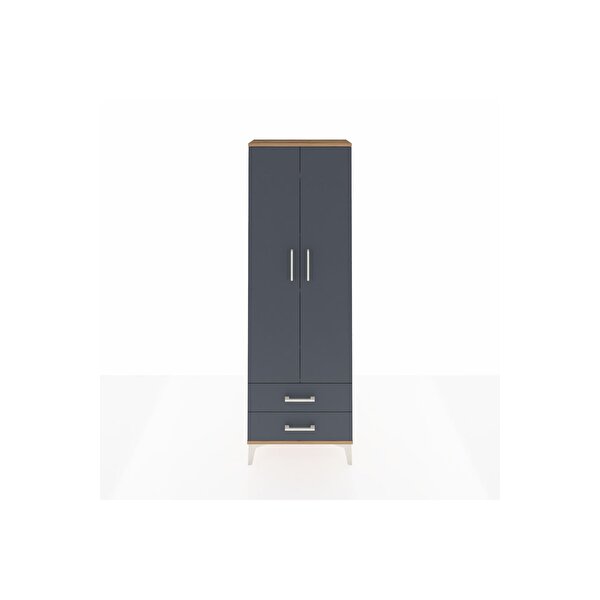 Dienni Mobilya Arges Dolap 5 Raflı 2 Çekmeceli 2 Kapaklı 60x30x182 Çam-antrasit