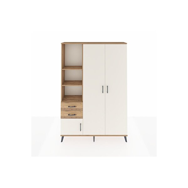 Arges Dolap 5 Raflı 2 Çekmeceli Tek Askılı 132x30x195 Çam-Aytaşı/Çam