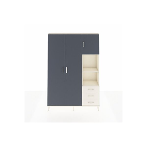 Dienni Mobilya Arges Dolap 5 Raflı 3 Çekmeceli Tek Askılı 132x30x195 Aytaşı-antrasit/aytaşı